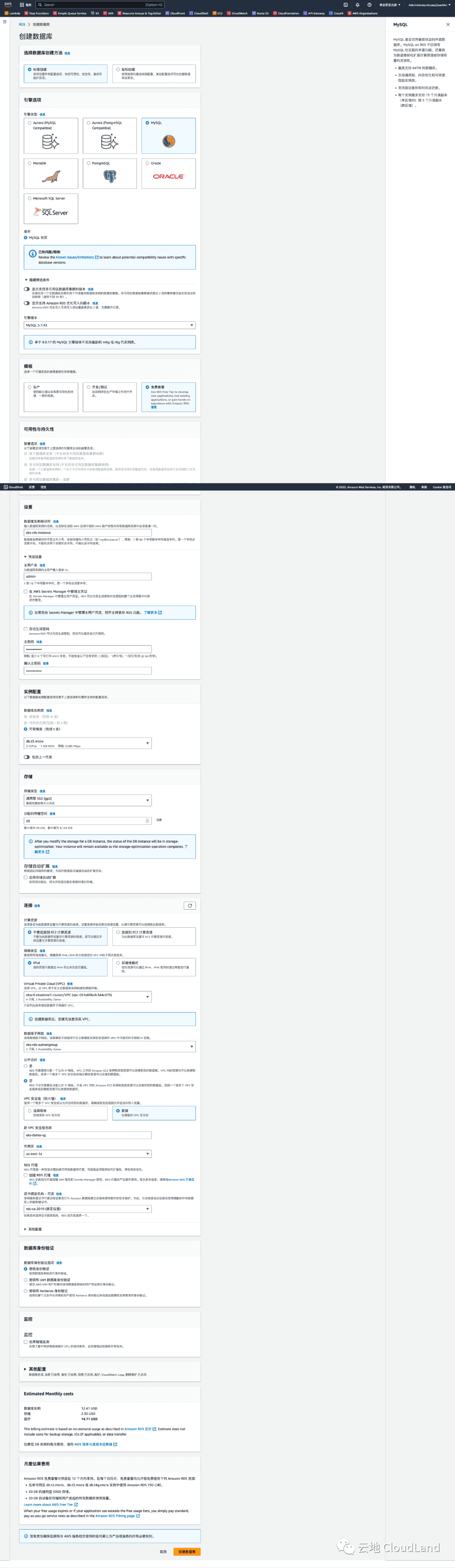 如图, 创建一个 RDS Mysql 数据库实例, 部分配置如下: